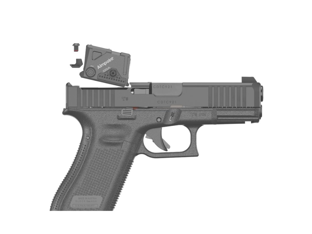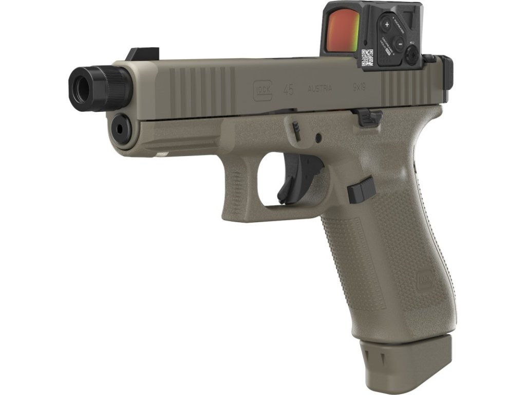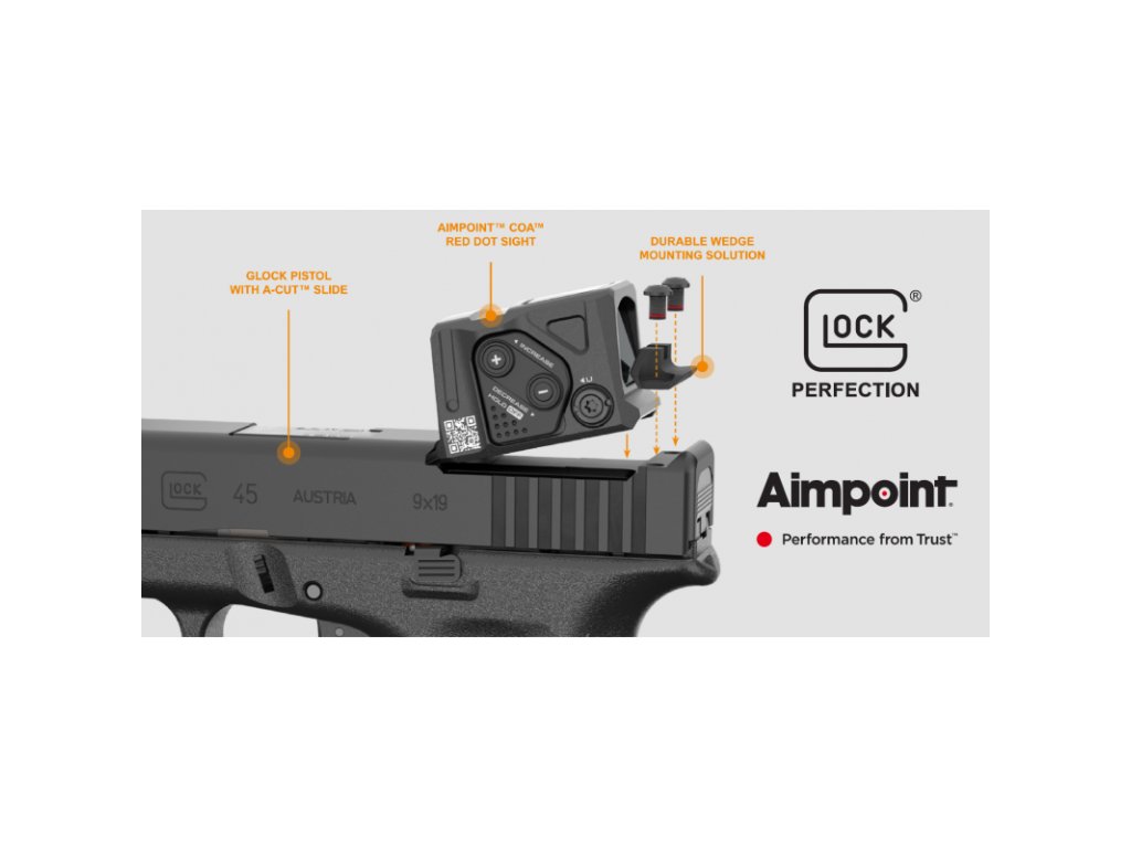 Glock 45 Gen5 A-CUT COA je model veľkosti CROSSOVER v kalibry 9 mm Luger dodávaný ako COMBO s kolimátorom Aimpoint COA: