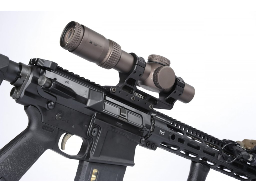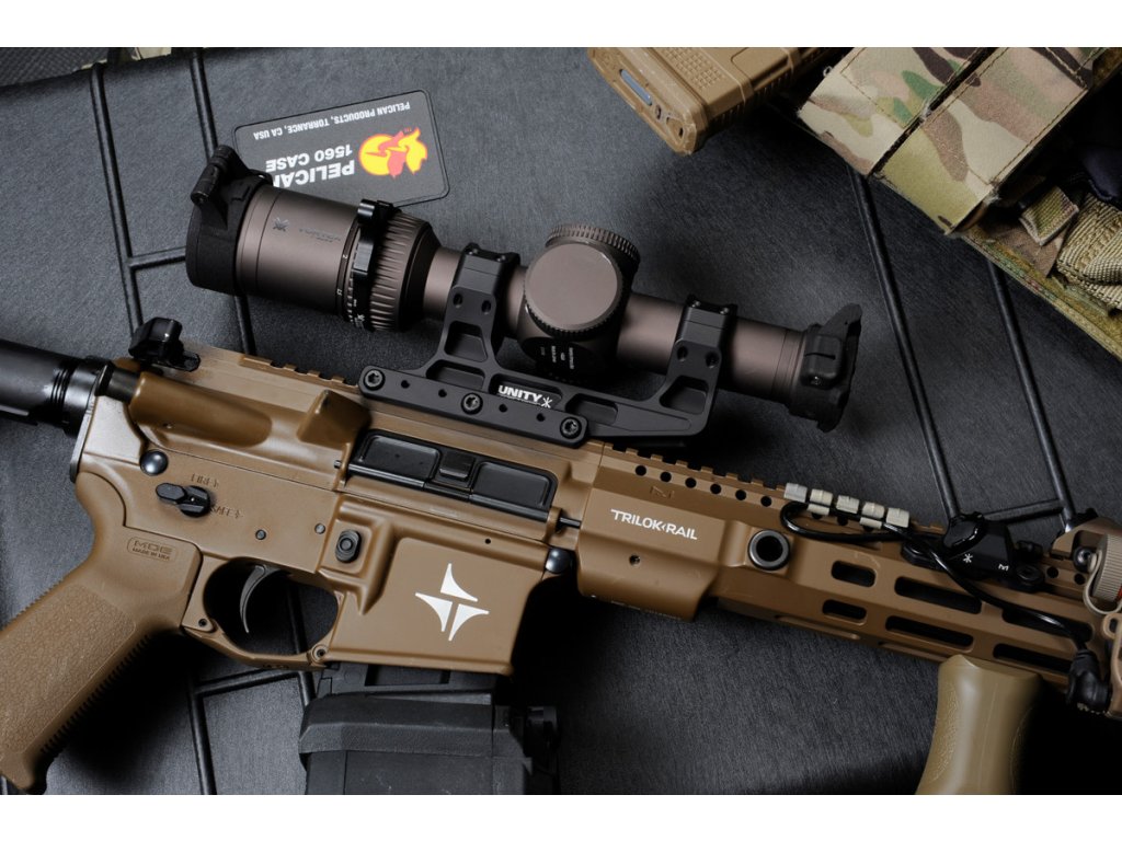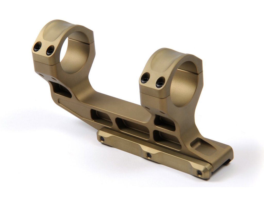 Držiak ďalekohľadu FAST™ LPVO je vyrobený z hliníka 7075-T6 a tvrdého anodizovaného čierneho laku typu III alebo FDE*.