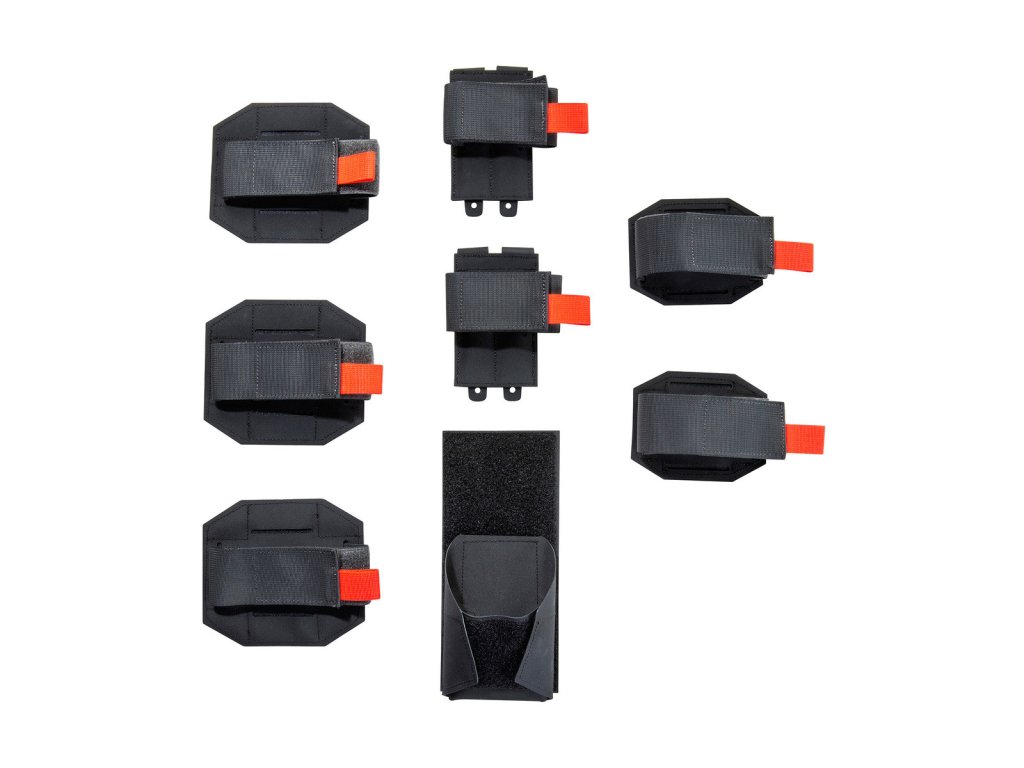 Súprava sa skladá z rôznych háčikov a uchytení MOLLE, ako aj nastaviteľného lievika na ochranu ústia, z Hypalonu. Je vhodný pre tašky a batohy s veľkými suchými a suchými zipsami a MOLLE a možno ho použiť aj na TT Modular Front Seat Panel (položka 7548).