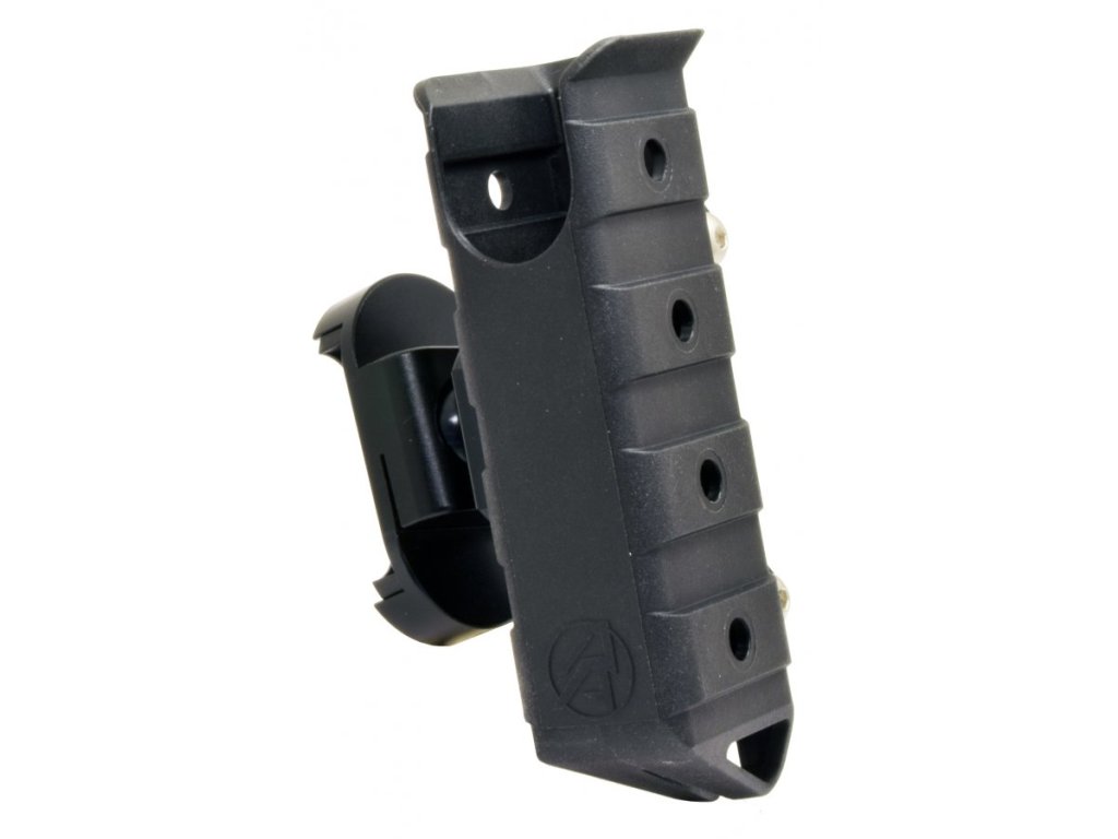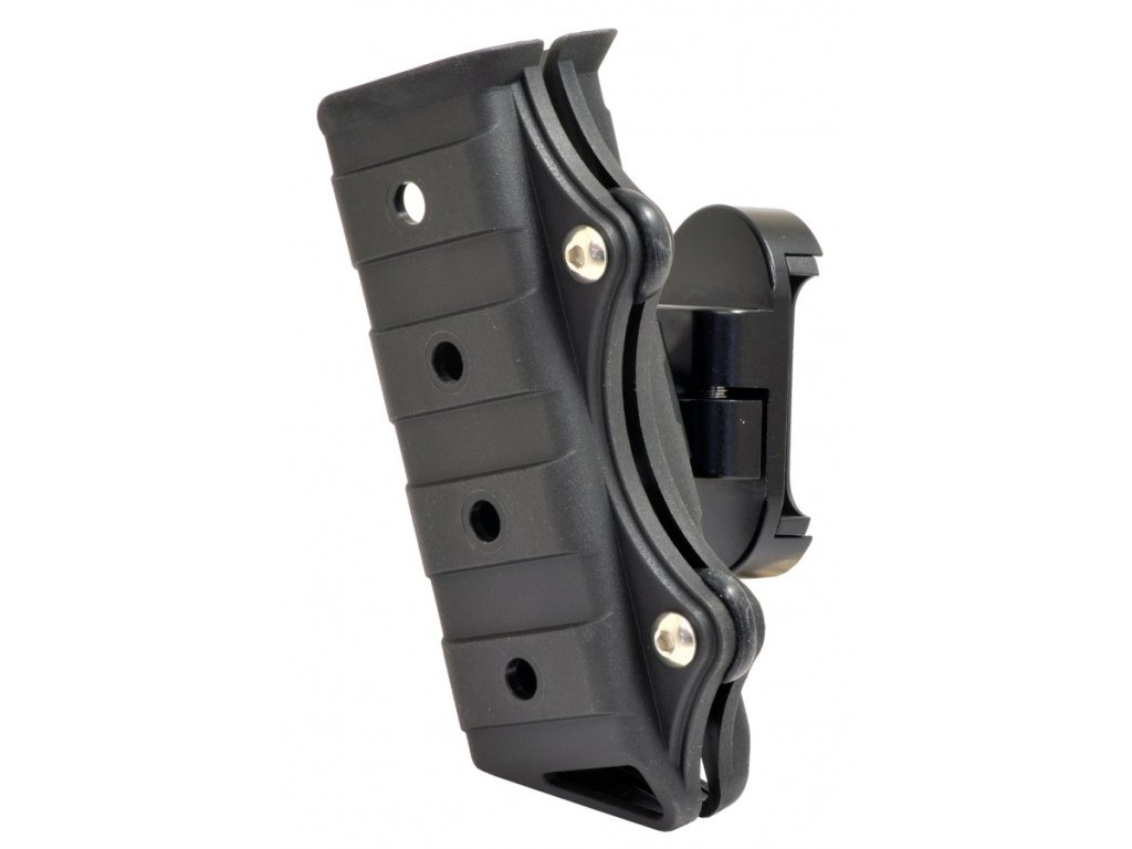 Telo puzdra je obojručné, čo umožňuje montáž guľového kĺbu závesu na opasok na oboch stranách a v troch voliteľných výškových polohách. Veľký guľový kĺb sa pripevňuje dvoma montážnymi skrutkami a na mieru vyrobenými oceľovými maticami s T-drážkou pre extra pevnosť a odolnosť.