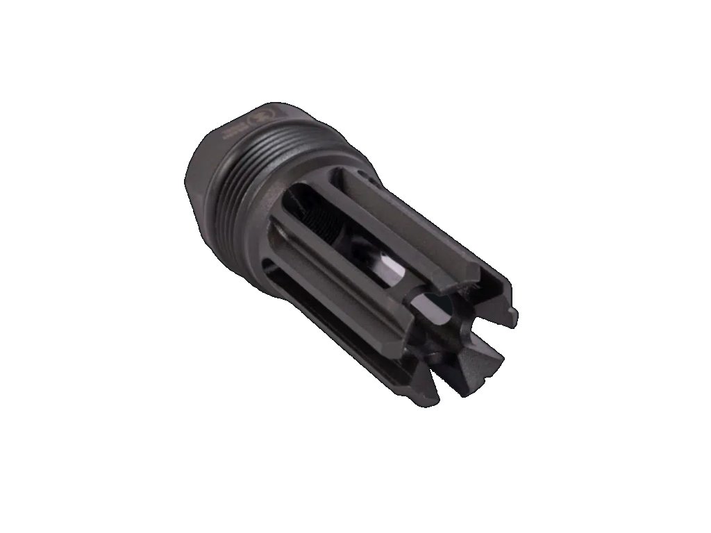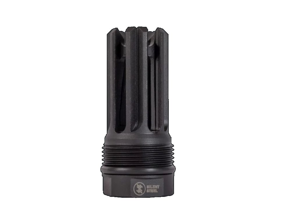 Silent Steel QD Flash hider je supresorové upevňovacie úsťové zariadenie, ktoré je veľmi efektívnym a silným 5-hrotovým krytom blesku. Hroty sú navzájom spojené na ústí krytu blesku. Vďaka tomu sú hroty pevnejšie a nehrozí ich ohnutie. Monolitický dizajn hrotov zabraňuje cinkaniu hrotov pod paľbou, čo je celkom bežná vlastnosť krytov bleskov hrotového typu.