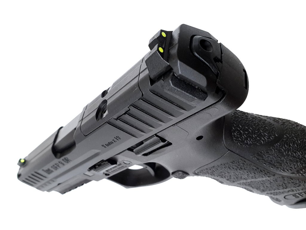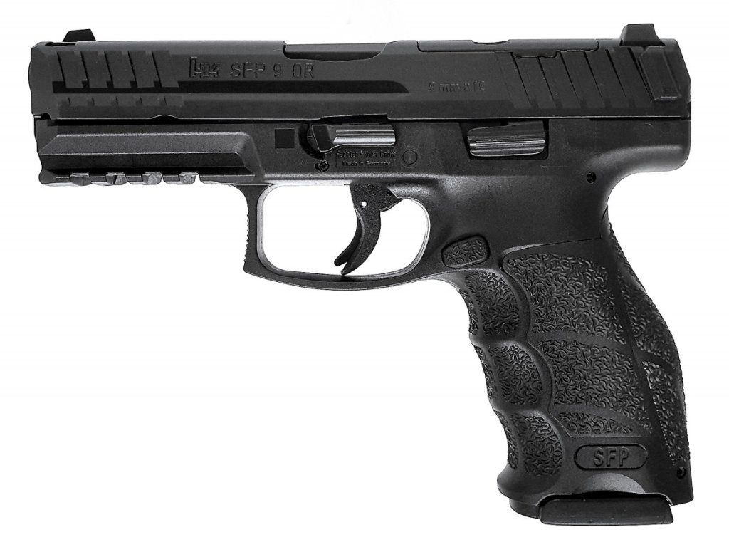SF - spúšť Special Forces 20-25N. OR (optical ready) - príprava na kolimátor. PB (push button) - vypúšťanie zásobníka pomocou tlačidla. Picatinny lišta. Fosforeskujúce mieridlá (1+2 body). Rovnaký zásobník ako v P30. Bez montážnych platničiek.